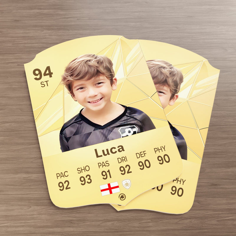 CardsPlug is home to the world’s favourite personalised football cards. Our easy football card builder lets you make a real life football card with your own name, photo, and skill ratings. With 100+ designs to choose from and some inspired by EA SPORTS FC 26 cards seen in EA FC 26, EA FC 25 and FC 24 as well as FIFA cards seen in games like FIFA 23 and FIFA 22.
