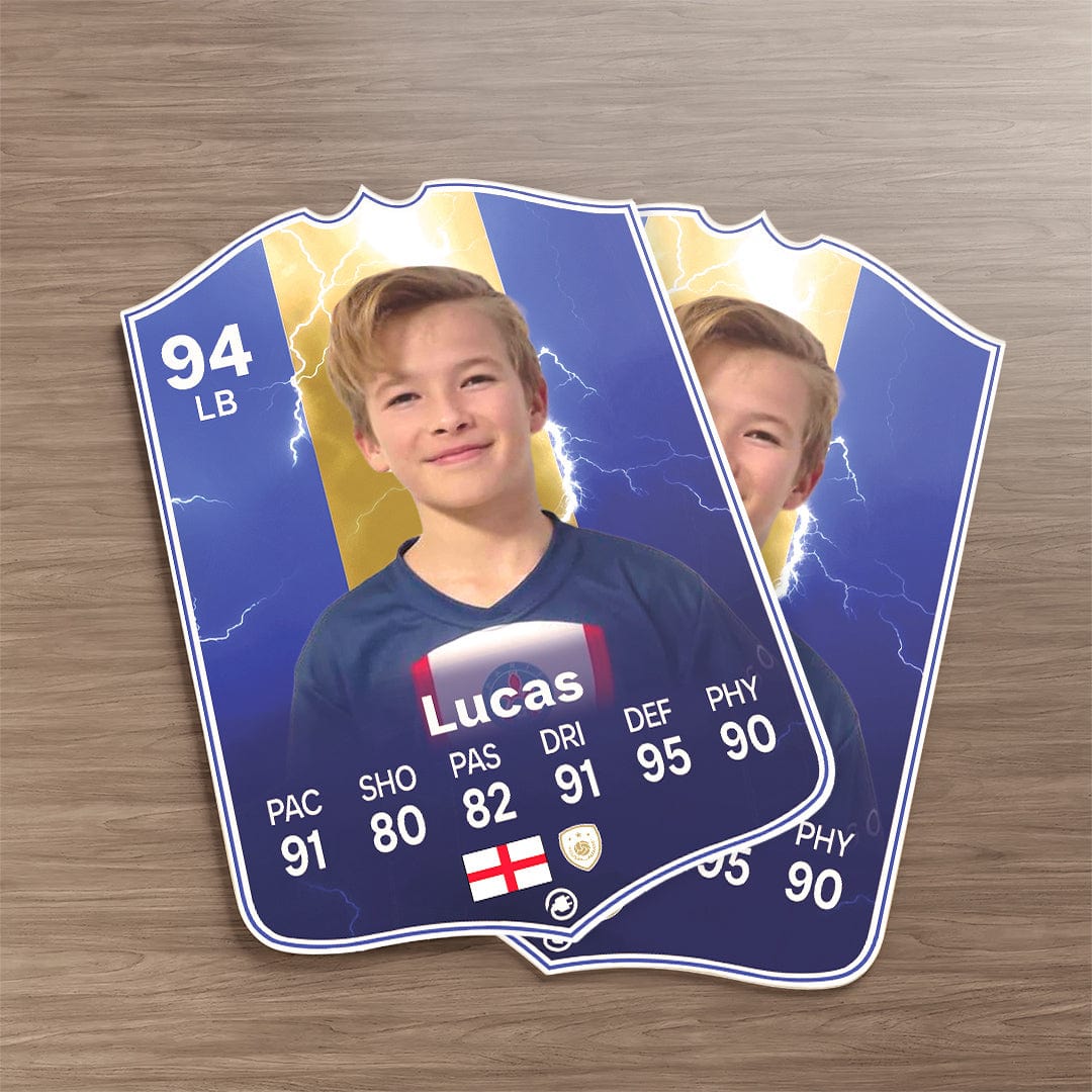 CardsPlug is home to the world’s favourite personalised football cards. Our easy football card builder lets you make a real life football card with your own name, photo, and skill ratings. With 100+ designs to choose from and some inspired by EA SPORTS FC 26 cards seen in EA FC 26, EA FC 25 and FC 24 as well as FIFA cards seen in games like FIFA 23 and FIFA 22.