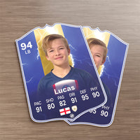 When it comes to personalising your card, the basic steps are to upload a photo and add a name to your card. Then you’ll add details like your player’s position and skill ratings out of 99 for each football skill shown on the card. Our online card builder makes this really easy. And if you aren’t a football card expert, don’t worry!
