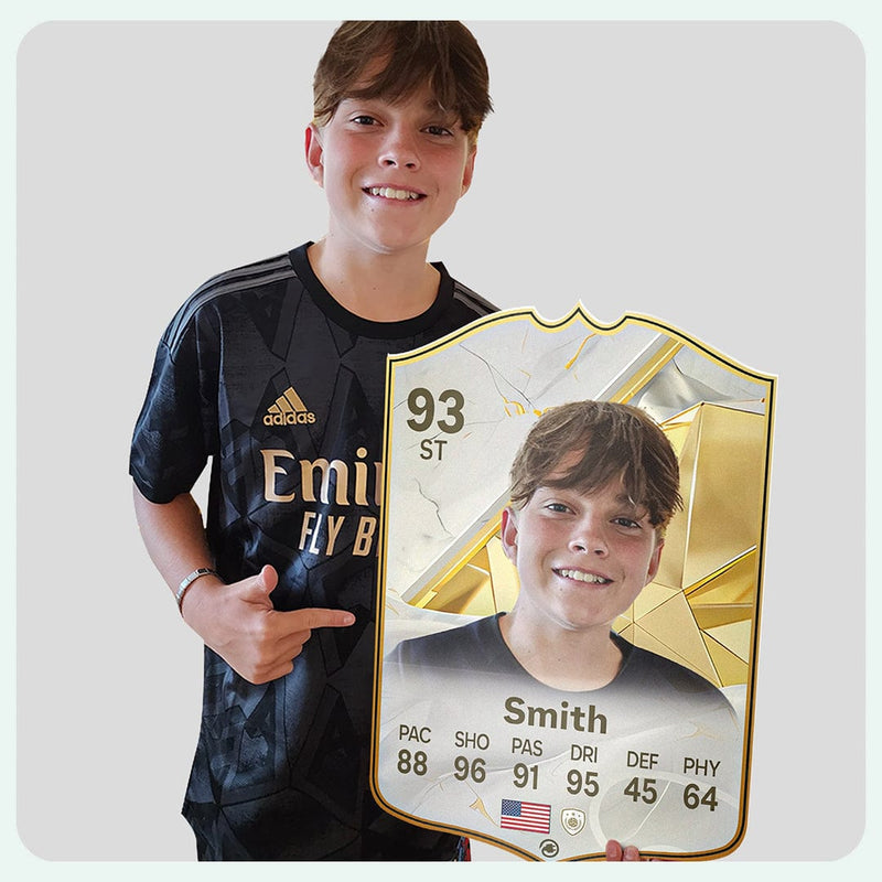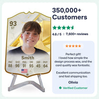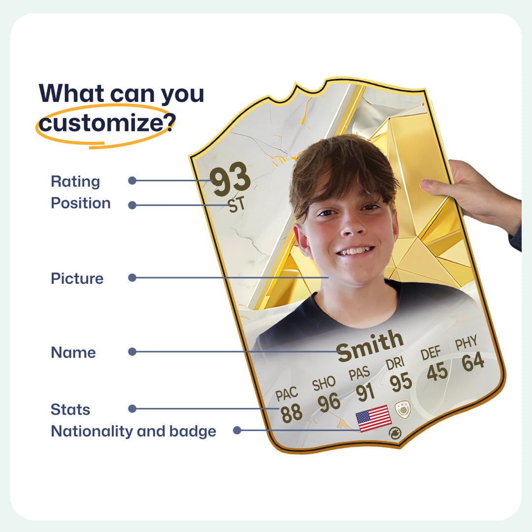 Yes! Our football card designers will remove the background from the photo you upload so it looks just like the football cards you might’ve seen games like EA FC 25, EA FC 24 or FIFA. We’ll also position the photo perfectly on the football card so it looks great. If there are any problems with the quality of your photo, we’ll reach out and let you know. Plus, our website's AI will remove the background on the image for visual purposes before purchase so you can see it without a background on the card.