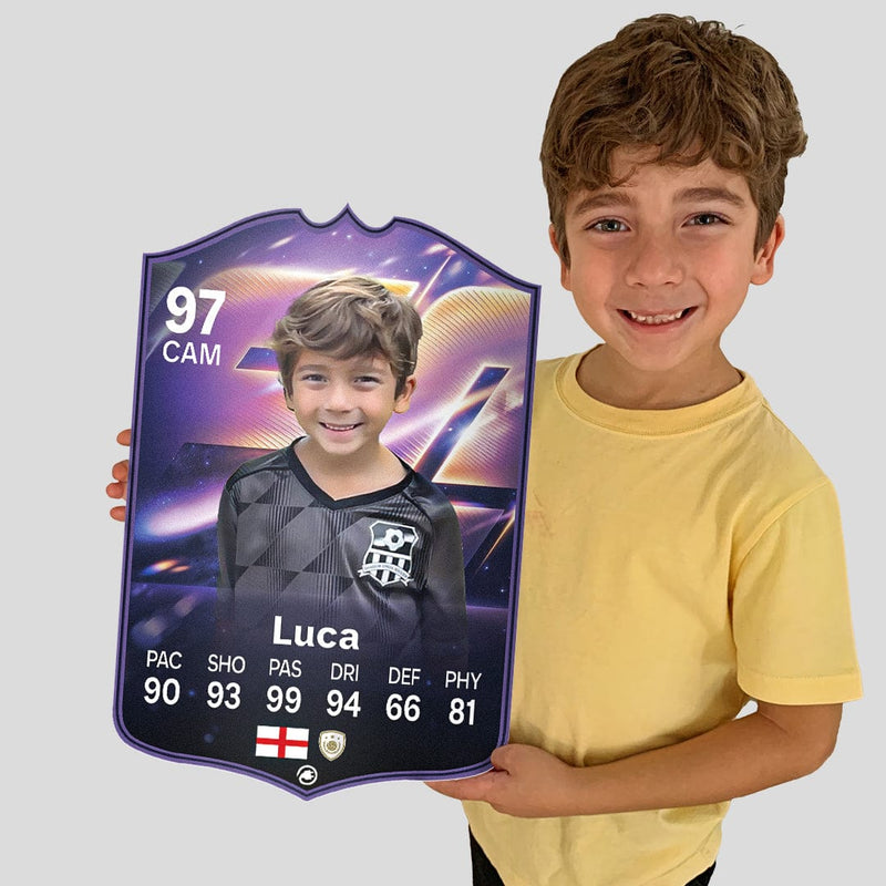 Yes! Our football card designers will remove the background from the photo you upload so it looks just like the football cards you might’ve seen games like EA FC 25, EA FC 24 or FIFA. We’ll also position the photo perfectly on the football card so it looks great. If there are any problems with the quality of your photo, we’ll reach out and let you know. Plus, our website's AI will remove the background on the image for visual purposes before purchase so you can see it without a background on the card.