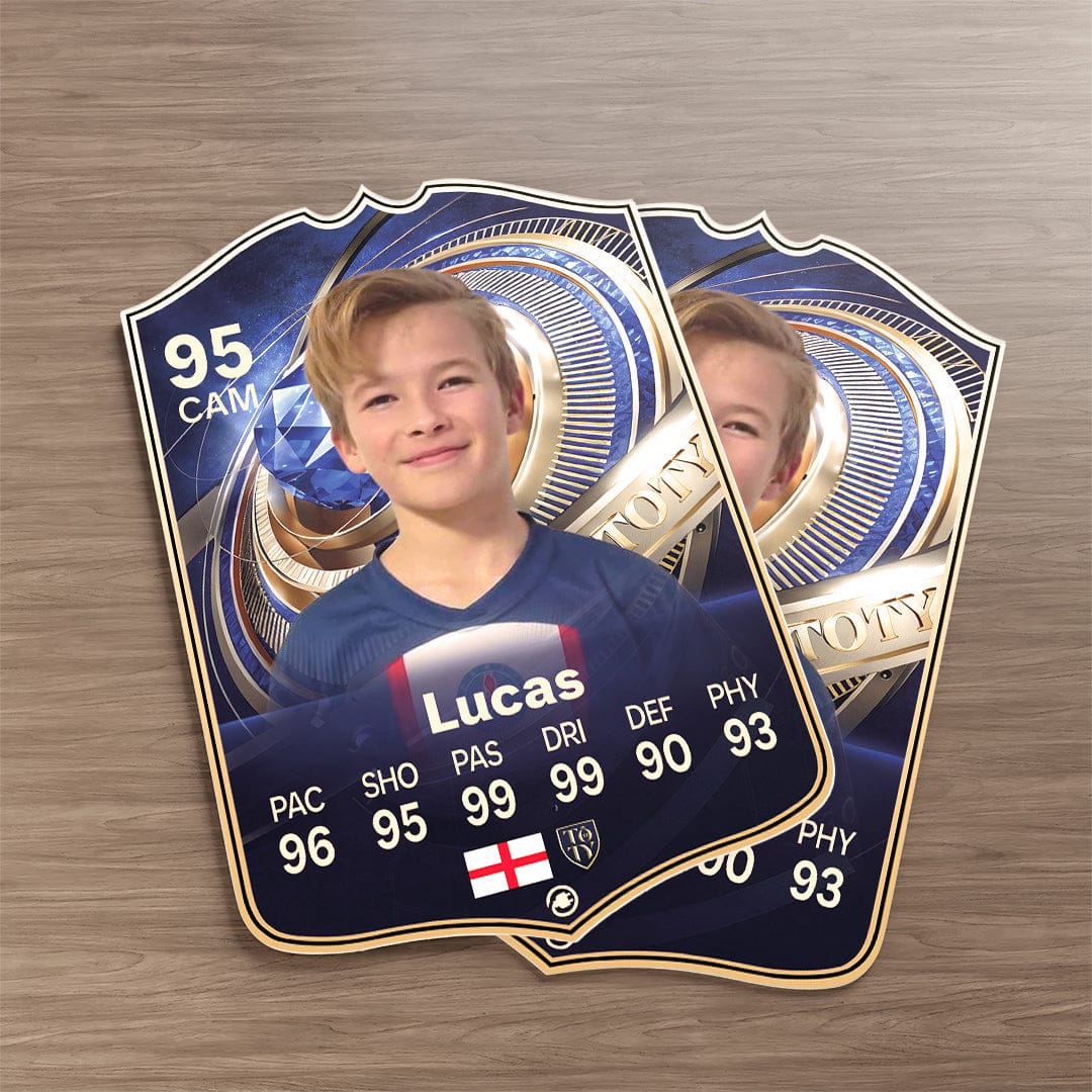 CardsPlug is home to the world’s favourite personalised football cards. Our easy football card builder lets you make a real life football card with your own name, photo, and skill ratings. With 100+ designs to choose from and some inspired by EA SPORTS FC 26 cards seen in EA FC 26, EA FC 25 and FC 24 as well as FIFA cards seen in games like FIFA 23 and FIFA 22.